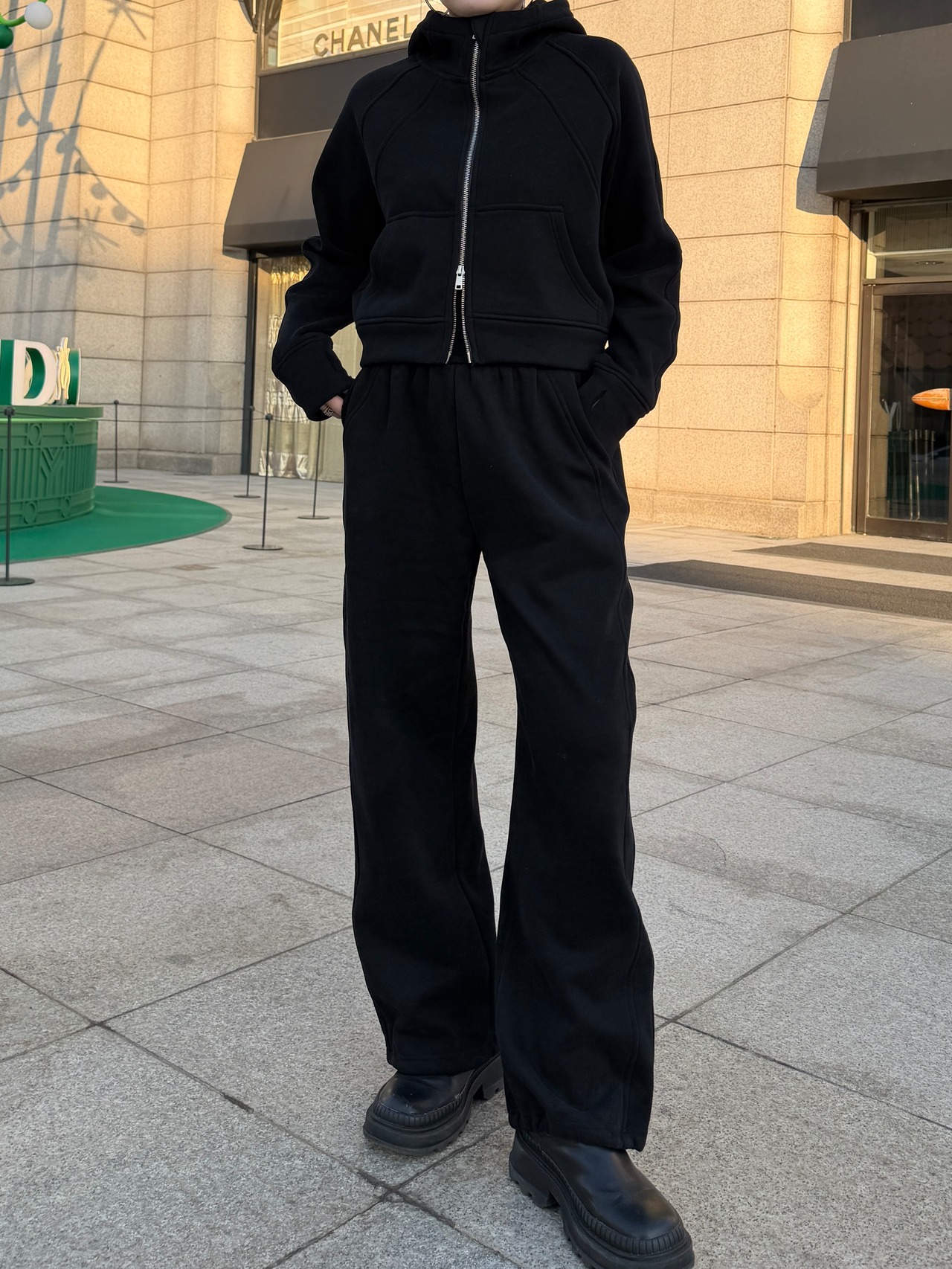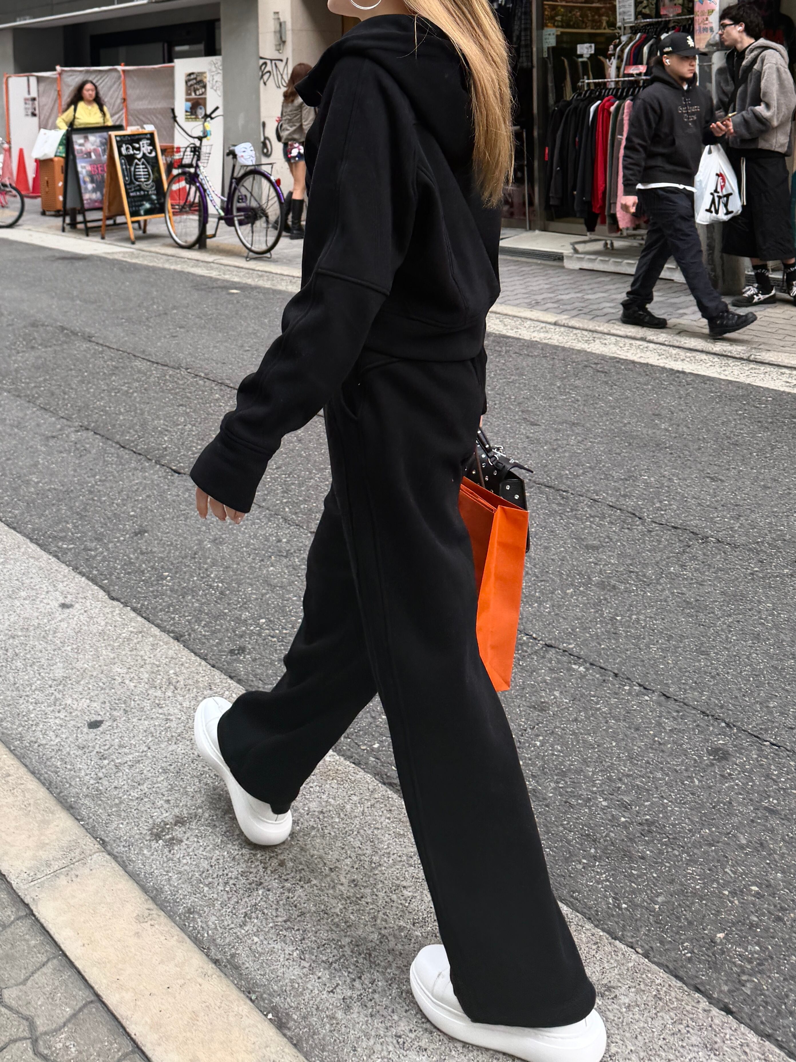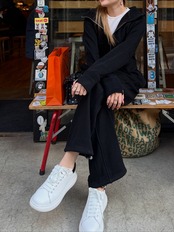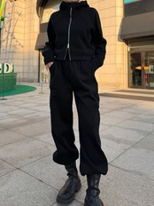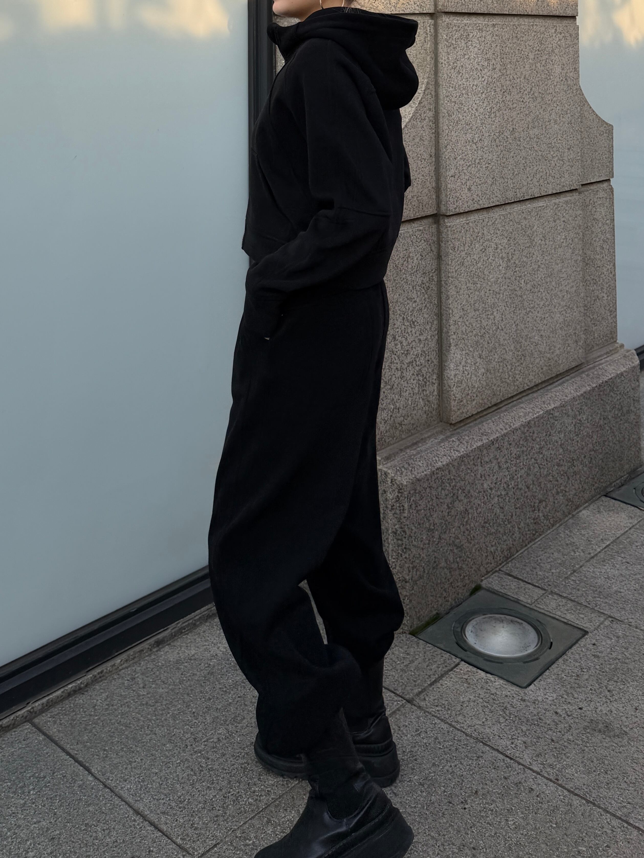 パンツは落ち感のあるストレートラインで、裾も絞れるのでジョガー風でも楽しめスニーカーにもブーツにも相性抜群。様々な場で幅広く使える万能アイテムです。