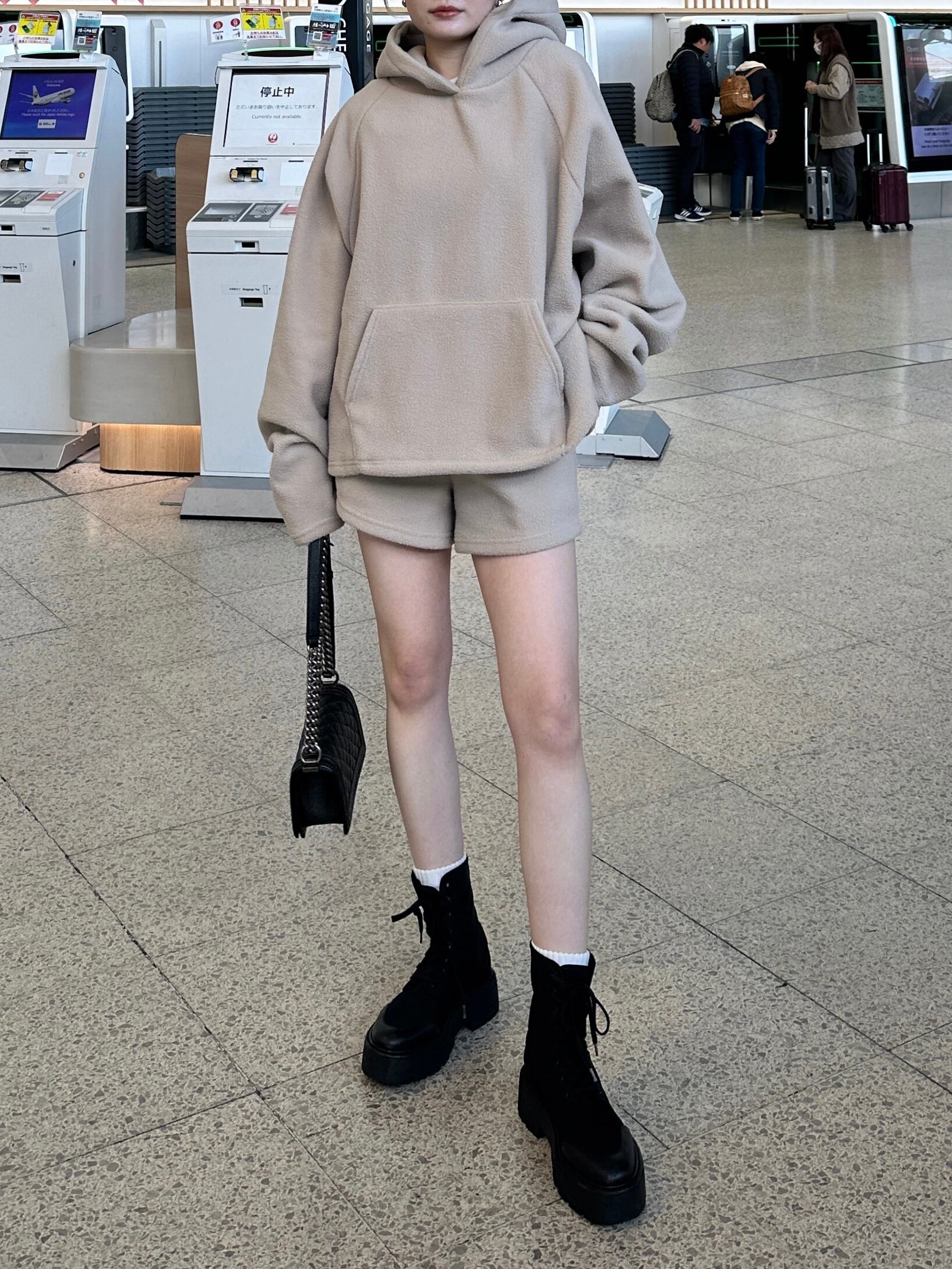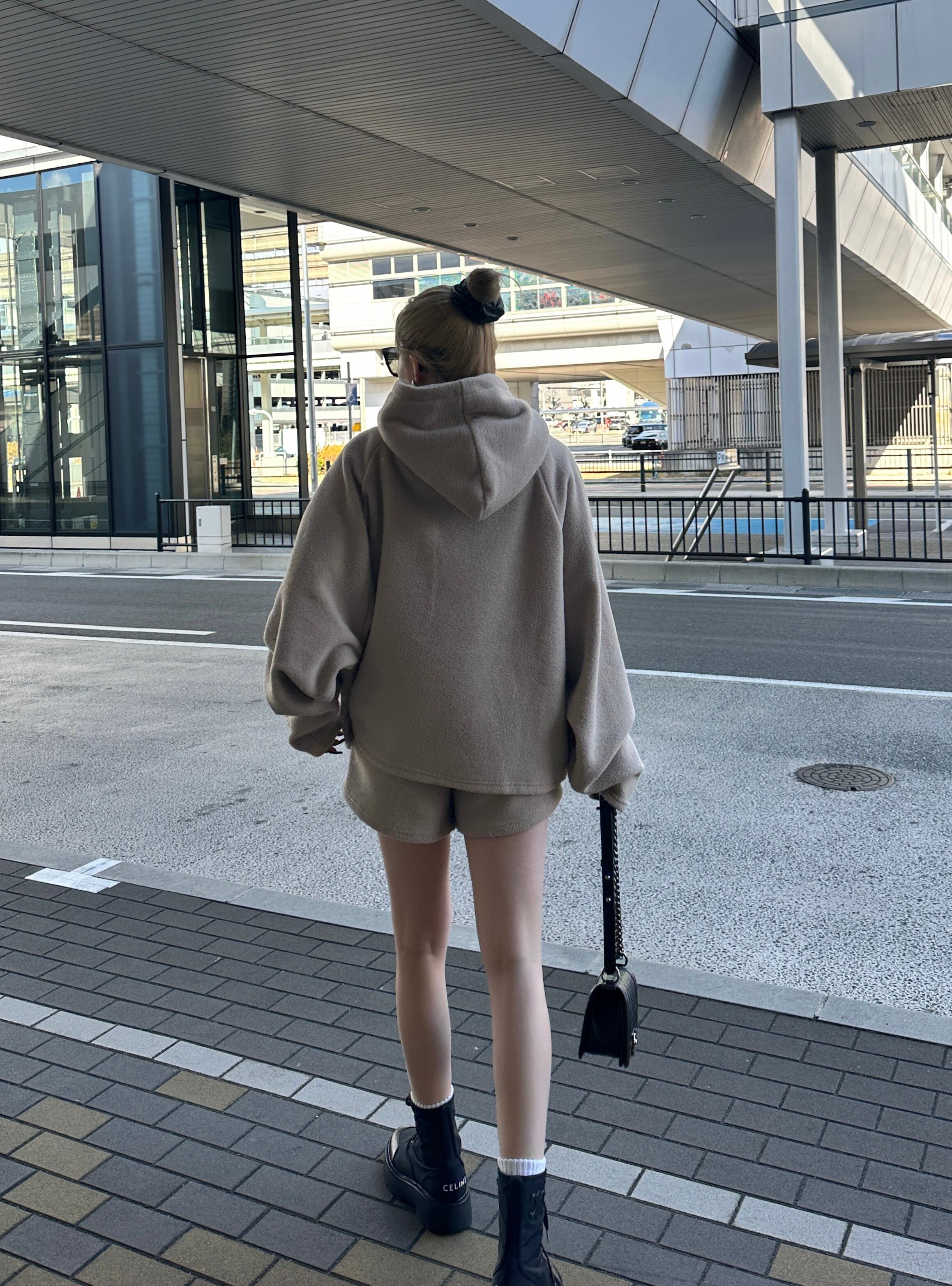 シンプルでありながら、カジュアルからリラックスまで幅広いスタイルにマッチする「 fleece setup」です。ふんわりとしたフリース素材を使用し、しっかりとした暖かさを提供します。フード付きで利便性も高く、ゆったりとしたシルエットが心地良い着心地となってます。